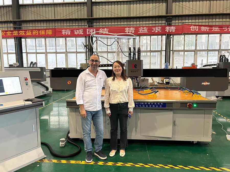 考察數(shù)控設(shè)備,對(duì)工業(yè)機(jī)器人的興趣是百分百,對(duì)新能源產(chǎn)業(yè)也是流連忘返,在我們準(zhǔn)備發(fā)貨的設(shè)備前面不走了,一定要拍照留念,讓我們的銷售人員細(xì)心介紹每款產(chǎn)品的功能。